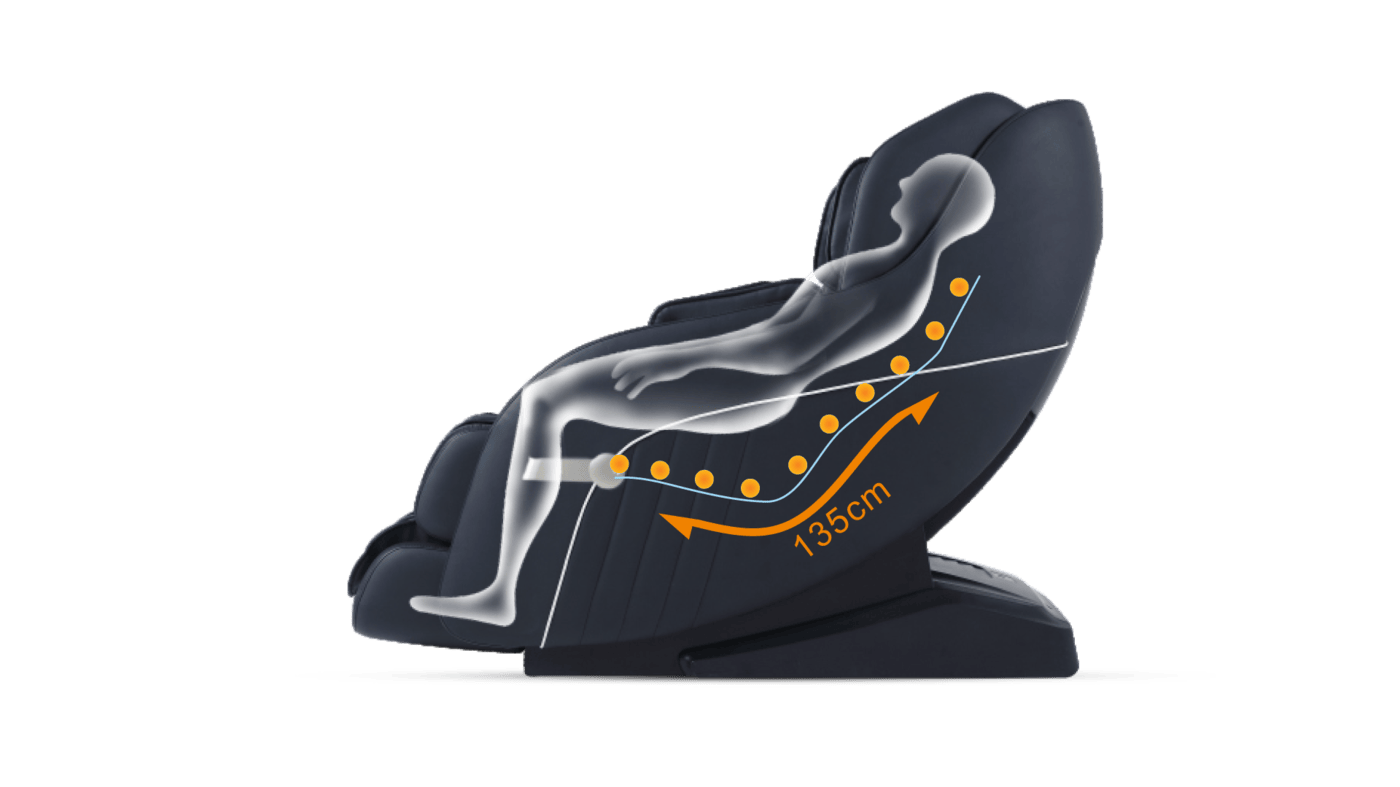 Η ανθρώπινη μηχανική συνδυάζεται με μια μελετημένη τεχνολογία διαστημικής καμπύλης ράγας σε σχήμα «SL» για να αυξήσει την απόσταση μασάζ στα 135 cm, επιτρέποντάς σας να απολαύσετε ένα εξατομικευμένο μασάζ από την κορυφή μέχρι τα νύχια, βοηθώντας στη διατήρηση της καμπύλης σχήματος «S» των σπονδύλων του ανθρώπινου σώματος. Κάτι που θα βοηθήσει στην επίτευξη της χαλάρωσης της σπονδυλικής στήλης, ανακουφίζοντας την ένταση των μυών.