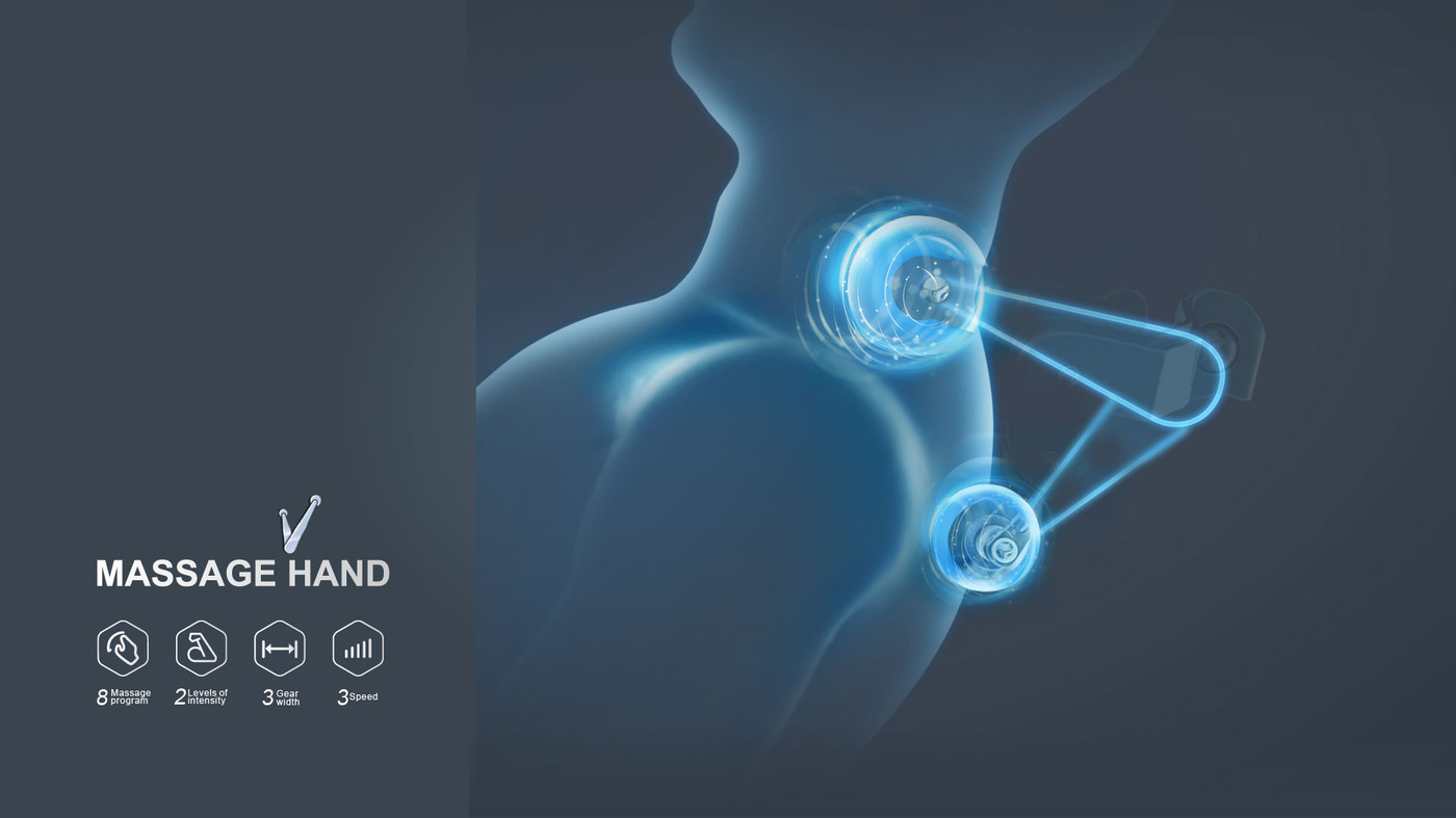 Τα "έξυπνα" μηχανικά χέρια μπορούν να κινηθούν κατά μήκος του σώματος, στο λαιμό, στους ώμους, στην πλάτη και στη μέση. Μπορούν να τοποθετήσουν αυτόματα το σώμα σε γωνία, ώστε το εύρος του μασάζ να κυμαίνεται από 21 έως 135 cm στην οριζόντια στάση, όπου καλύπτεται πλήρως η πλάτη.