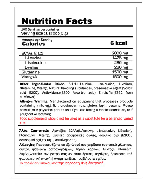 Για καλύτερα αποτελέσματα, καταναλώστε 1 δόση 5γρ.(1 scoop ) 20 λεπτά πριν την προπόνηση και 1 δόση μετά την προπόνηση.