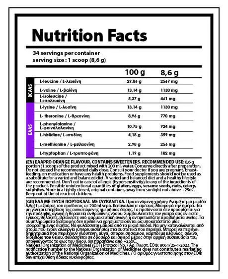 Το Nutriyummy EAA Pro Orange 300g, αποτελεί ένα συμπλήρωμα διατροφής εξαιρετικής ποιότητας, το οποίο τροφοδοτεί τους αθλητές με αμινοξέα, ικανά να συνθέσουν πρωτεΐνες με σκοπό την ανάπτυξη της μυϊκής μάζας στο σώμα. Τα ΕΑΑ, είναι αμινοξέα τα οποία ο οργανισμός αδυνατεί να συνθέσει γι αυτό το λόγο συστήνεται να λαμβάνονται εξωγενώς, ιδιαίτερα όταν η ζήτηση είναι υψηλή.