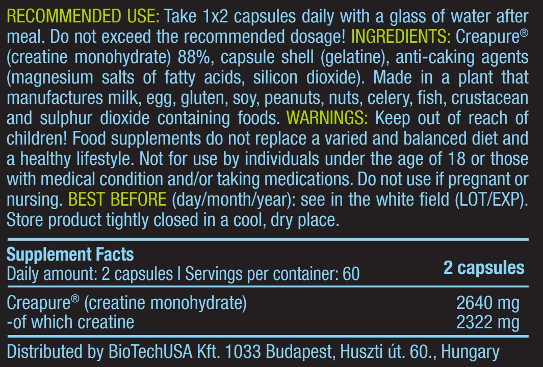 3)Περιέχει τον τύπο-σήμα κατατεθέν της Creapure®, ο οποίος είναι: Φαρμακευτικής ποιότητας και μικρονισμένης μορφής, περιλαμβάνεται στη λίστα της Κολωνίας, χρησιμοποιείται από αθλητές υψηλού επιπέδου