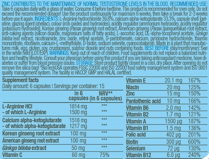 Όπως όλα τα προϊόντα BioTechUSA, το Men's Arginine αποτελείται από ασφαλή και προσεκτικά επιλεγμένα συστατικά.