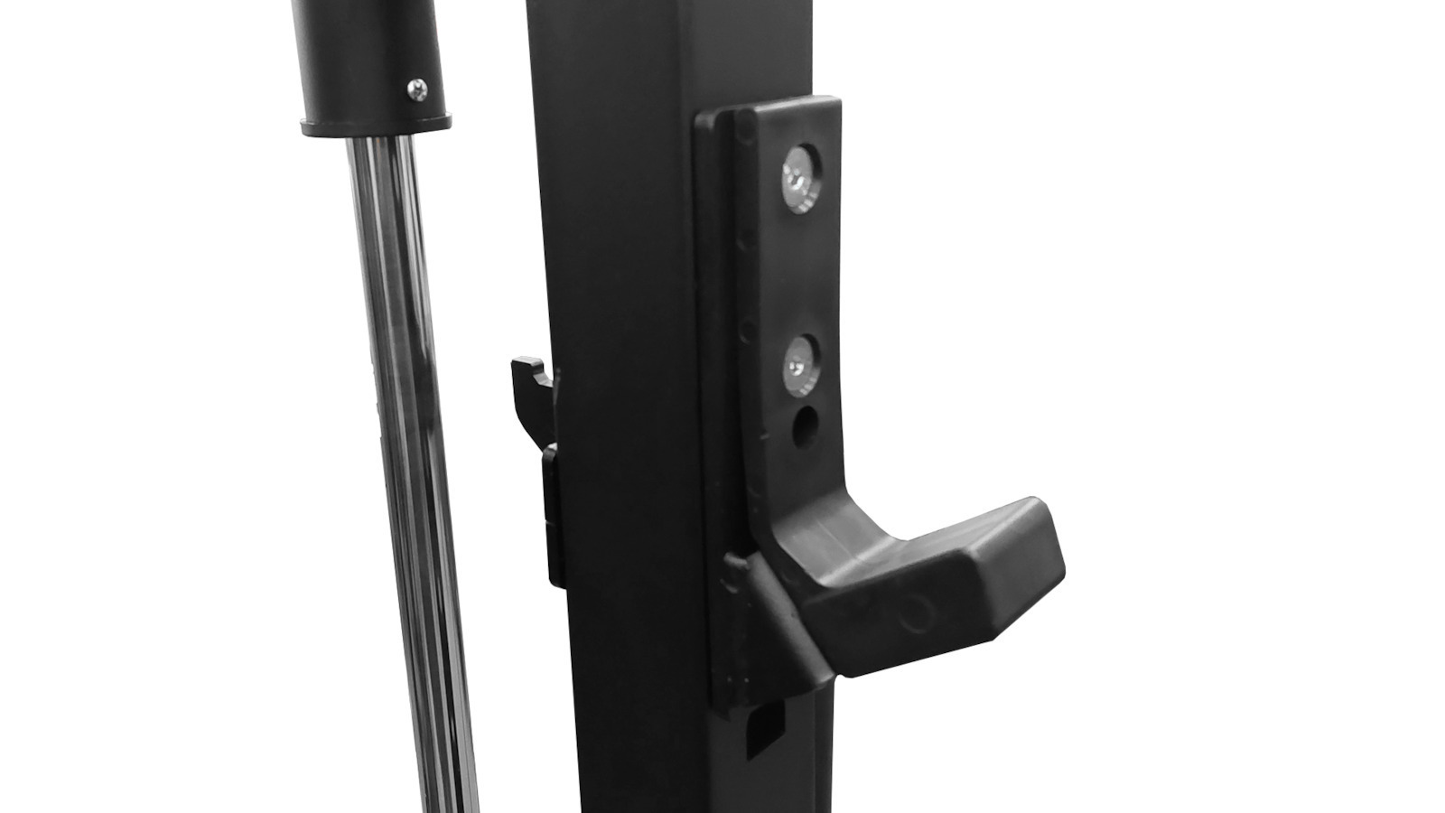 Διαθέτει 2 άγκιστρα εναπόθεσης μπάρας από συμπαγές χάλυβα, για εύκολη και ασφαλή τοποθέτησή τους σε 16 διαφορετικά ύψη για ελεύθερες ασκήσεις με μπάρα.