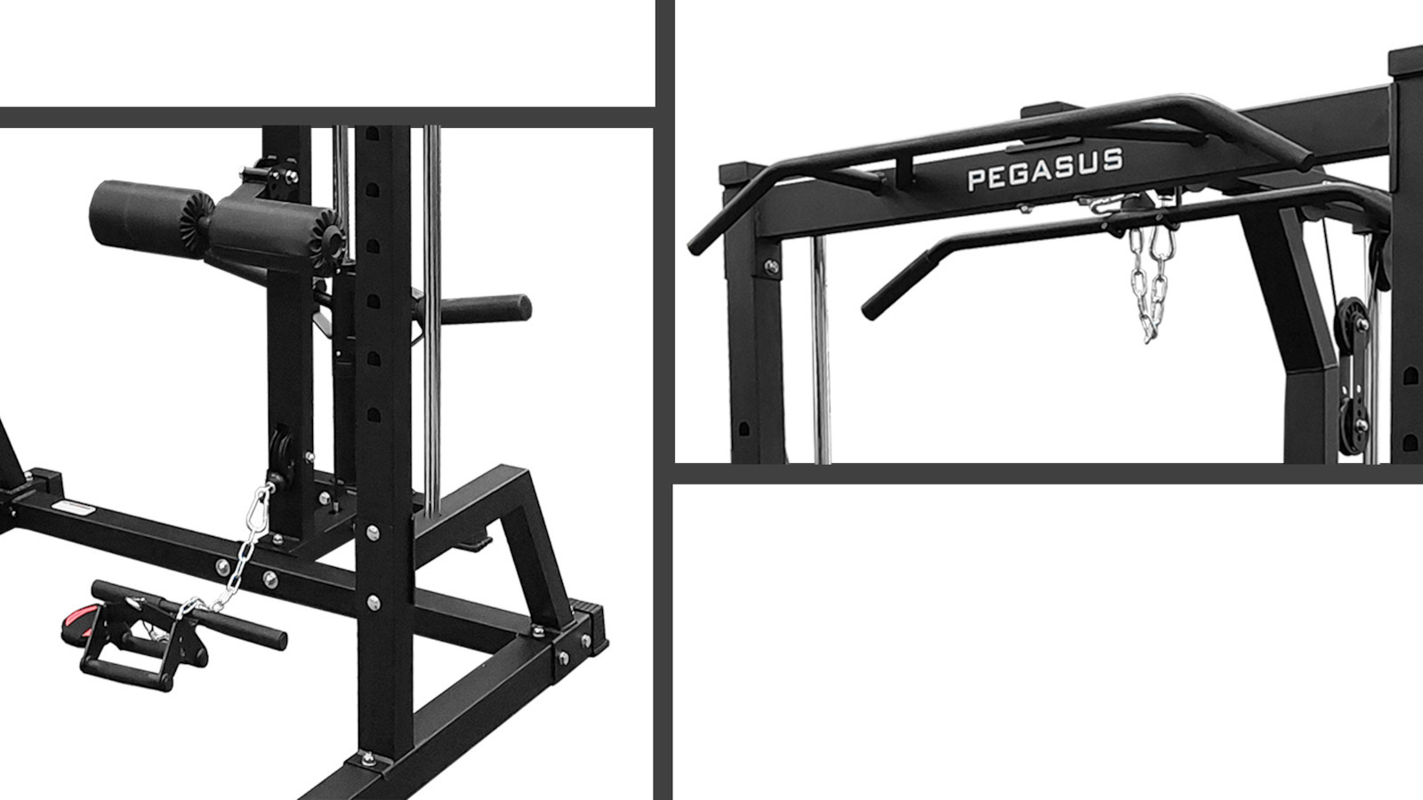 Μπορείτε να χρησιμοποιήσετε το σύστημα μπάρας τύπου Smith σε συνδυασμό με το σύστημα Τροχαλιών Πλάτης για να ενισχύσετε την δύναμή σας. Καθιστώντας το έτσι ένα ευέλικτο εργαλείο για την τόνωση του Στήθους, των Ώμων, των Μηρών, της Πλάτης και των Χεριών.