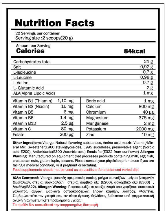 Το Vitargo® είναι ένα μοναδικός, πατενταρισμένος υδατανθράκας, υψηλού μοριακού βάρους ειδικά σχεδιασμένος για αθλητές, καθώς αποτελεί μια πραγματικά αποτελεσματική πηγή ενέργειας, που αυξάνει την παροχή γλυκογόνου στους μύες, είναι άμεσα απορροφήσιμο και βοηθά στην ανάπτυξη μυών καθώς και στη βελτίωση των επιδόσεων.