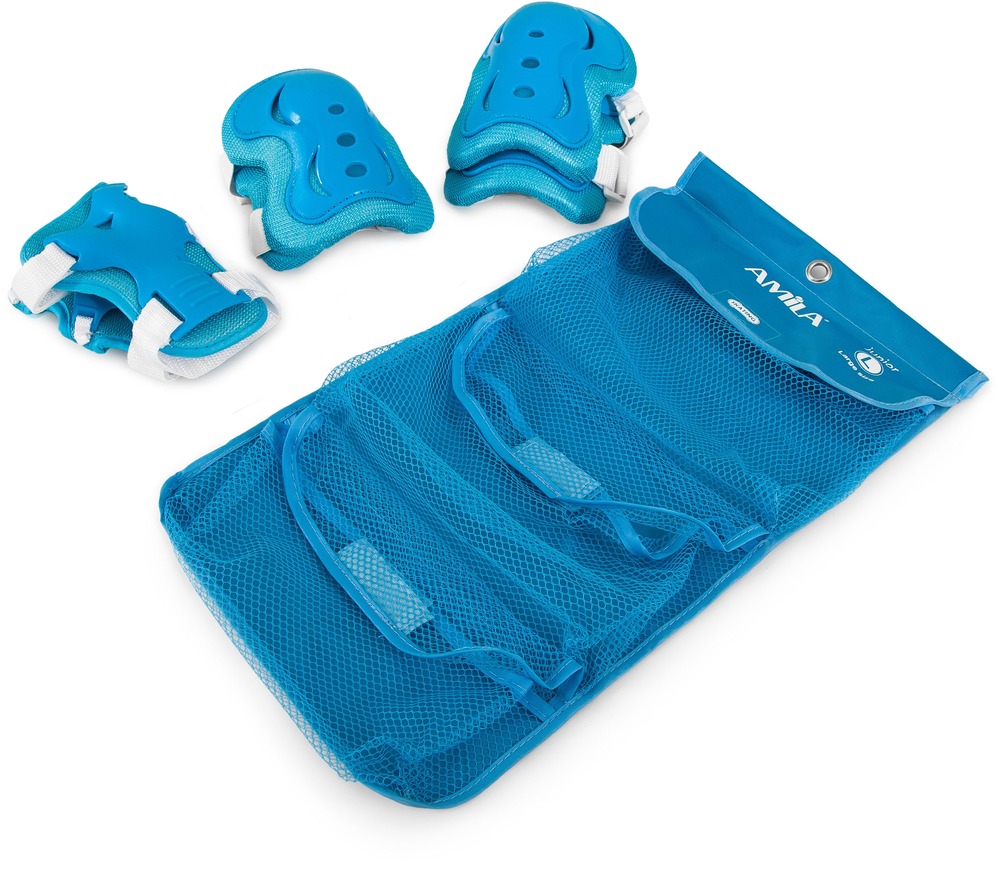 Το προστατευτικό σετ της AMILA προσφέρει μια ολοκληρωμένη προστασία στο παιδί κατά την εξερεύνηση των σπορ όπως το skateboard, το inline skating, την ποδηλασία και γενικώς τα «riding» sports.