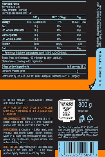 Citrulline Malate Unflavoured BioTech  (300gr)