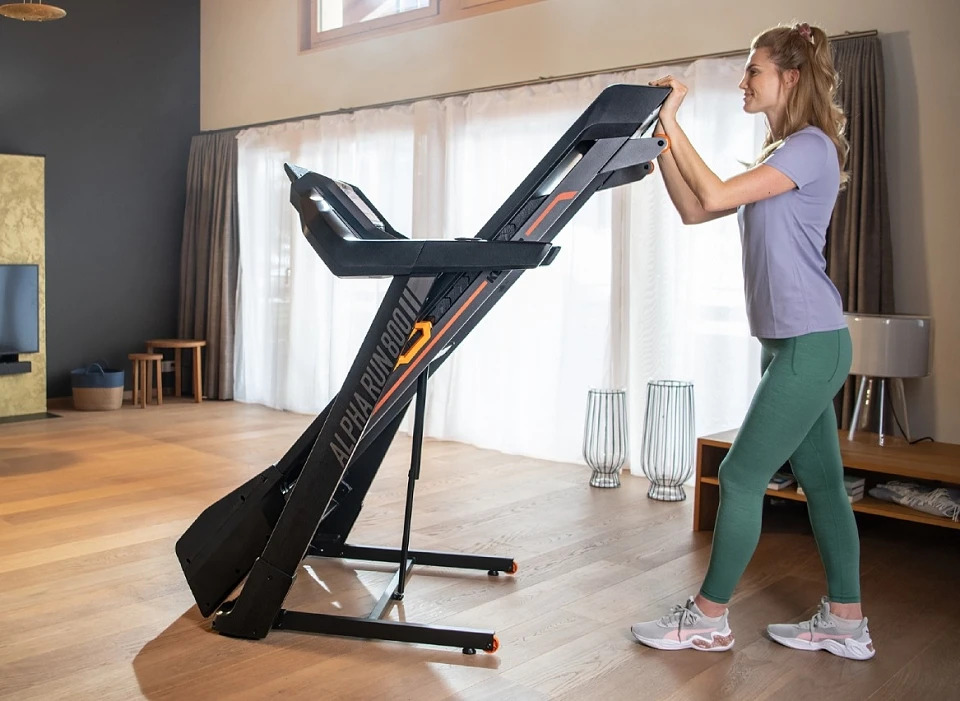 Μόλις ολοκληρώσετε την προπόνησή σας, ανασηκώστε τον τάπητα του διαδρόμου και αναδιπλώστε τον με τη μεγαλύτερη ευκολία και ασφάλεια χάρη στο ειδικό σύστημα υποβοήθησης αναδίπλωσης KETTLER Soft Drop. Το κλείσιμο ή το άνοιγμα του διαδρόμου KETTLER ALPHA RUN 800 απαιτεί μόνο ελάχιστη προσπάθεια από εσάς. Απελευθερώστε ωφέλιμο χώρο στο σπίτι σας έως την επόμενη προπόνηση, μεταφέροντας το διάδρομο στο επιθυμητό σημείο χρησιμοποιώντας τα μαλακά και ανθεκτικά ροδάκια μεταφοράς.
