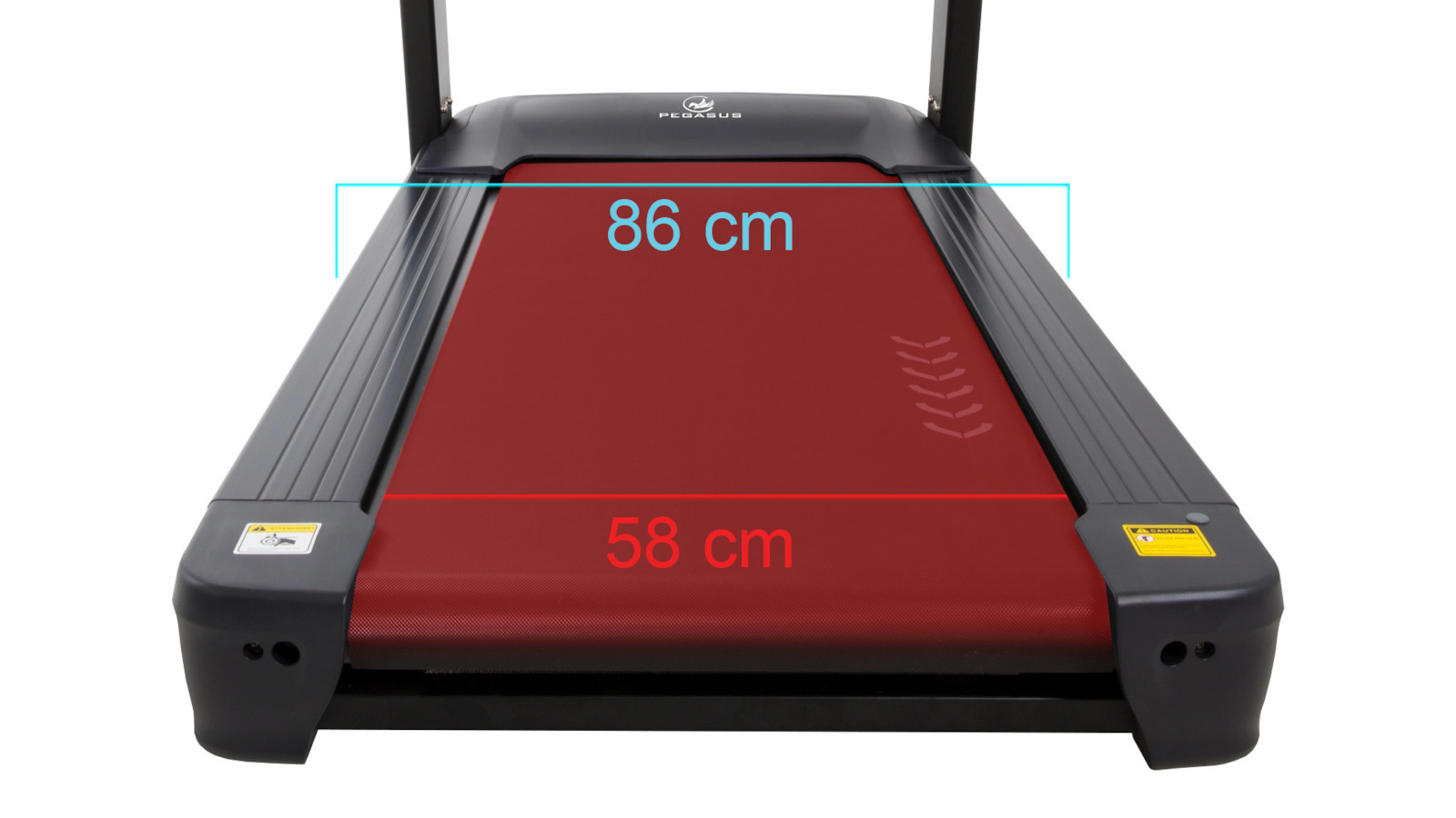 Οι εντυπωσιακές διαστάσεις των 58x155 cm εγγυώνται εξαιρετική άνεση κατά το τρέξιμο, ενώ η επιφάνειά του είναι σχεδιασμένη με μορφή αυλακώσεων εξασφαλίζοντας ιδανική πρόσφυση, υποστήριξη και ασφάλεια.