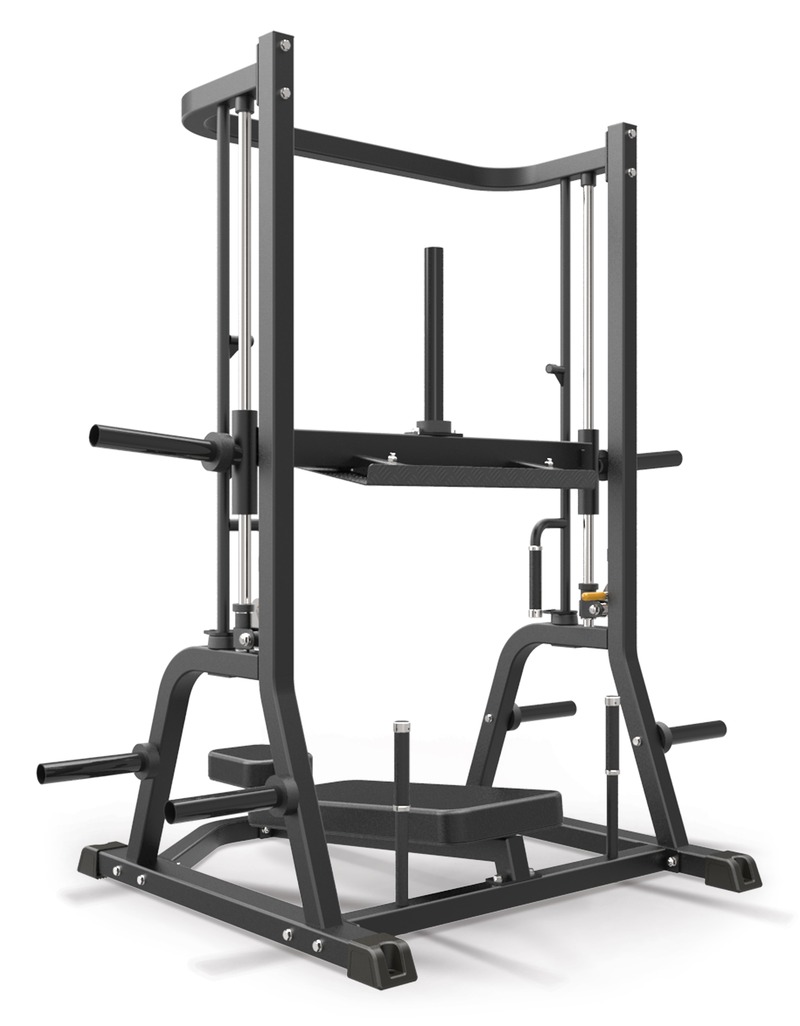 Το Vertical Leg Press διαθέτει 2 χειρολαβές έναρξης (απελευθέρωσης των βαρών), σε βολική θέση για τον χρήστη και διάφορες θέσεις εκκίνησης (που λειτουργούν και ως στοπ ασφαλείας) για να εξυπηρετεί διαφορετικούς σωματότυπους. Το μαξιλάρι της πλάτης έχει κλίση για να ταιριάζει με την κλίση που παίρνει το σώμα κατά την διάρκεια της άσκησης αυξάνοντας τα επίπεδα ασφαλείας για την αποφυγή τραυματισμών.