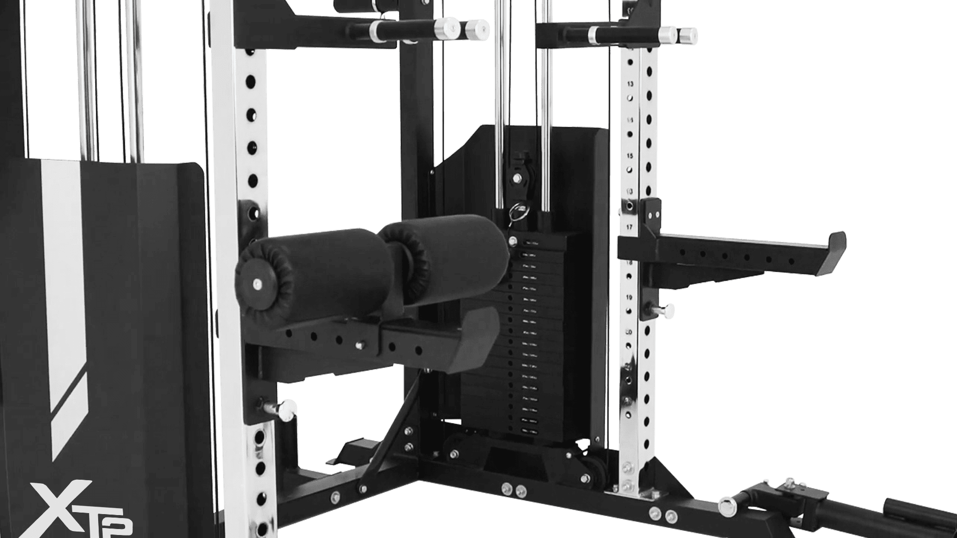 Διαθέτει ρυθμιζόμενη τροχαλία, με δυνατότητες περιστροφής 180 μοιρών και ρύθμισης σε 21 θέσεις, ενσωματωμένα μεταλλικά βάρη 180kg, μονόζυγο καθώς και αποθηκευτικό χώρο για μπάρες και στις δύο πλευρές, για εύκολη αποθήκευση και επιλογή.