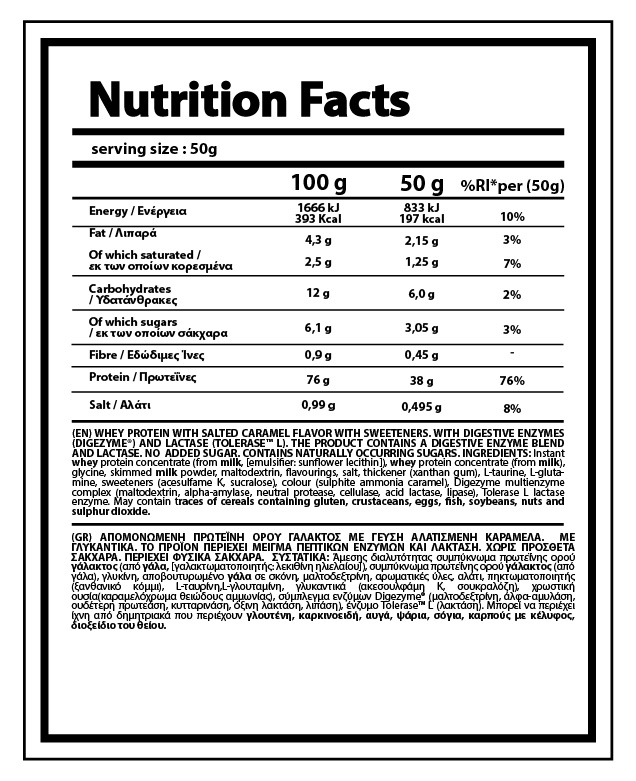 Η προσθήκη πεπτικών ενζύμων “DigeZyme®” και λακτάσης διευκολύνει την απορρόφηση και μειώνει την πιθανότητα δυσανεξίας, καθιστώντας το κατάλληλο ακόμη και για άτομα με ευαισθησία στη λακτόζη. Με GMP πιστοποίηση, χωρίς ΓΤΟ, χωρίς φοινικέλαιο και χωρίς προσθήκη ζάχαρης, αποτελεί αγνή και αξιόπιστη επιλογή για κάθε αθλητή ή δραστήριο άτομο.