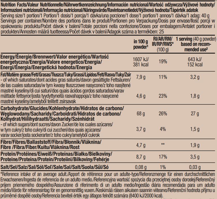 Ανακατέψτε 1 μερίδα (40 γρ. = 6 γεμάτες κουταλιές της σούπας) προϊόντος με 150-200 ml ζεστό νερό, ανακατέψτε καλά και αφήστε το για 1-2 λεπτά. Καταναλώστε το αμέσως μετά την προετοιμασία. Καταναλώστε το οποιαδήποτε στιγμή της ημέρας.
