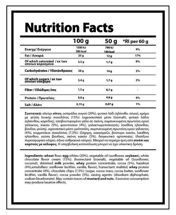 Το NUTRIYUMMY FIT MUFFIN CHOCOLATE 50G ξεχωρίζει για τη μοναδική του σύνθεση που συνδυάζει ποιοτικά συστατικά όπως το αλεύρι σίτου και το ασπράδι αυγού, προσφέροντας υψηλή διατροφική αξία. Σε αντίθεση με τα παραδοσιακά muffins, αυτά τα muffins έχουν χαμηλή περιεκτικότητα σε σάκχαρα, με λιγότερο από 0,5 g ζάχαρης ανά 100 g προϊόντος, καθιστώντας τα ιδανικά για μια ισορροπημένη διατροφή. Επιπλέον, η προσθήκη συμπυκνώματος πρωτεΐνης ορού γάλακτος (WPC) ενισχύει την πρωτεϊνική αξία και βελτιώνει την υφή.