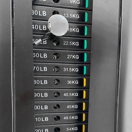 | Βάρη | 90 kg ( 20 πλάκες των 4,5 kg) μεταλλικές πλάκες. Προστασία βαρών σε ειδικό μεταλλικό καλύμμα προστασίας |