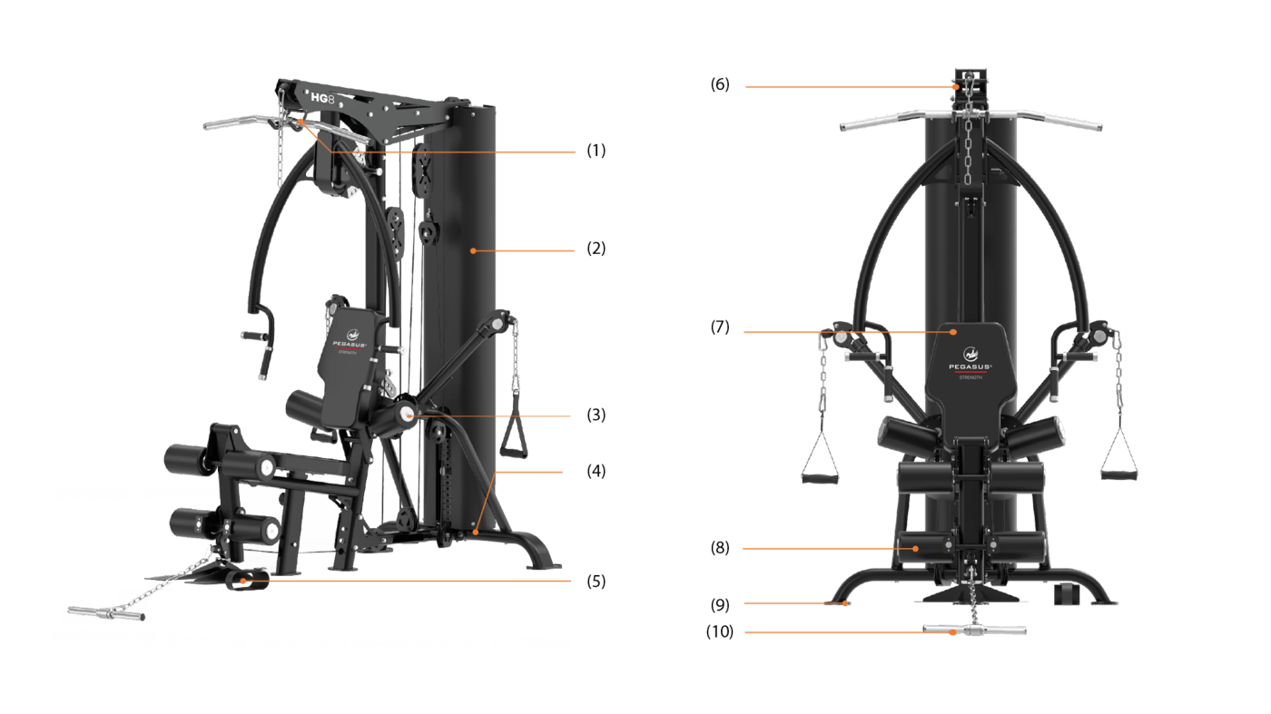 | Τύπος | Σταθμός προπόνησης (Στήθους (Πιέσεις/ Εκτάσεων) ,Τροχαλία πλάτης ,Χαμηλή τροχαλία ,Λειτουργία ποδιών ,Πολυ-λειτουργικοί βραχίονες) |
