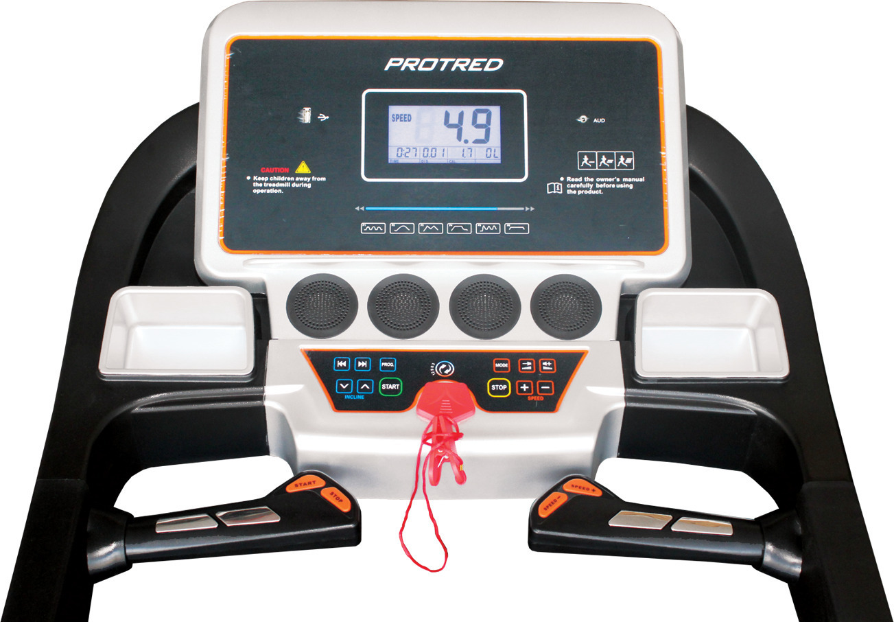 O ProTred MR-750 είναι ένας αξιόπιστος διάδρομος, εξοπλισμένος με κινητήρα 2.5 CHP που έρχεται με κλίση ηλεκτρονικά ρυθμιζόμενη σε 15 επίπεδα, αντικραδασμικό σύστημα πολλαπλών ελατηρίων, εντυπωσιακό για την κατηγορία του τάπητα πλάτους 45 cm, θύρα USB και ηχεία για να ακούτε την αγαπημένη σας μουσική.