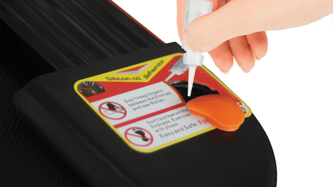 Στο πίσω μέρος του δαπέδου θα βρείτε δύο υποδοχές λίπανσης (δεξιά και αριστερά), όπου μπορείτε να ρίξετε το λιπαντικό. Στη συνέχεια, ξεκινήστε το διάδρομο σε χαμηλή ταχύτητα και το λιπαντικό θα διαχυθεί στον τάπητα από τα ειδικά σωληνάρια στο κάτω μέρος του δαπέδου.