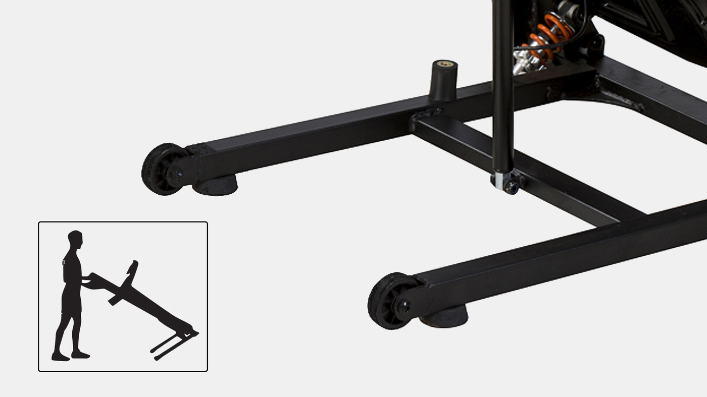 Ο διάδρομος αναδιπλώνεται εύκολα ακόμη και με ένα χέρι και ασφαλίζει με υδραυλικό αμορτισέρ. Κατόπιν μπορείτε χωρίς κόπο να τον μεταφέρετε και να κρατάτε το χώρο σας τακτοποιημένο.