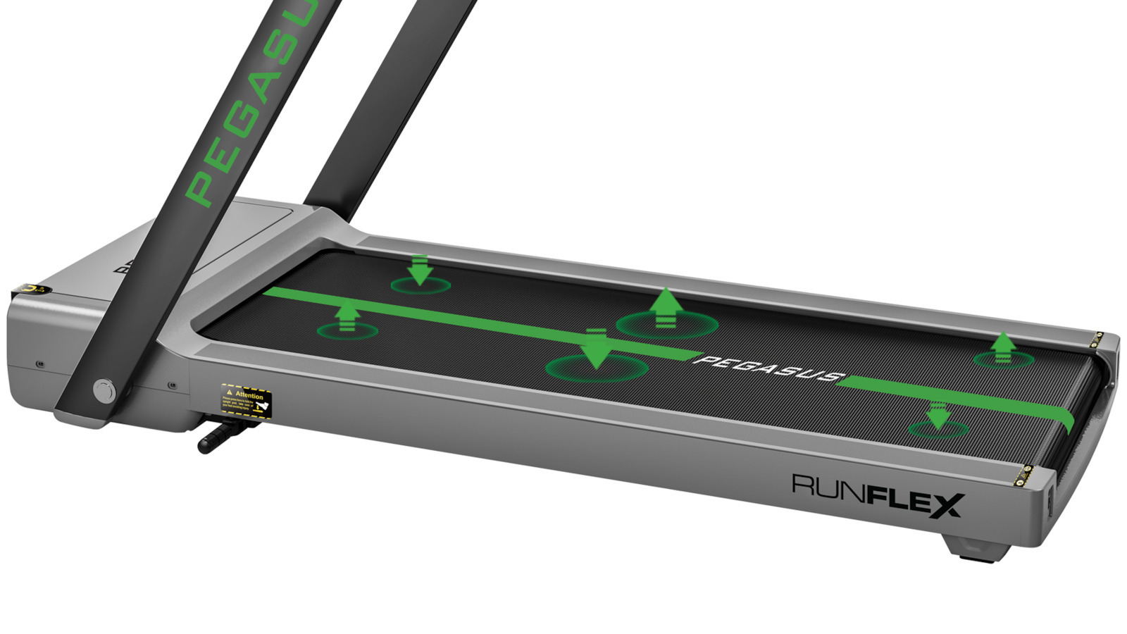 Ο Διάδρομος Pegasus® "Runflex" είναι εξοπλισμένος με ισχυρό κινητήρα 3.0HP και διαθέτει άνετο τάπητα 50x140 cm. Με δυνατότητα επίπεδης αναδίπλωσης σε πάχος μόλις 25.5 cm, αποτελεί ιδανική επιλογή για προπόνηση σε περιορισμένο χώρο.