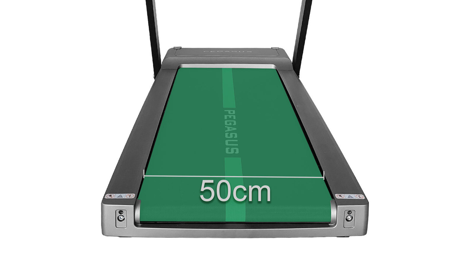 Η ποιότητα του RunFlex σας παρακινεί να ανεβάσετε ταχύτητα στο τρέξιμό σας. Για το λόγο αυτό, προσφέρει τάπητα με ιδιαίτερα άνετες διαστάσεις 50 x 140 εκατοστών, ώστε να μπορείτε να προπονηθείτε με ασφάλεια και χωρίς περιορισμό στην κίνησή, σας ακόμα και στις υψηλότερες ταχύτητες.