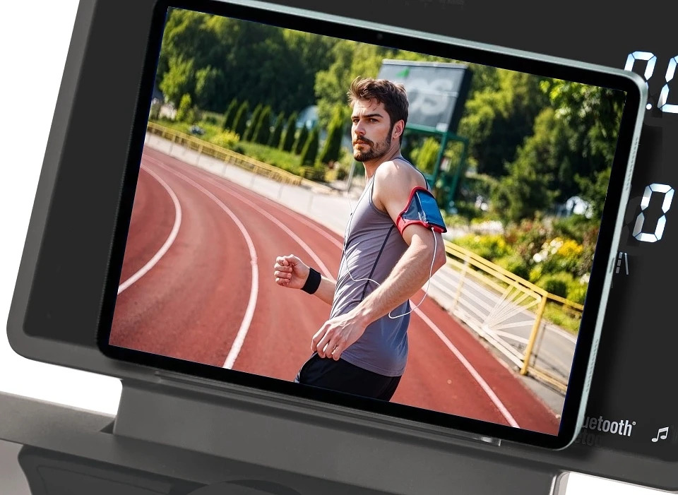 Συνδέστε το κινητό ή το tablet σας με τον διάδρομο μέσω Bluetooth, ώστε να εκμεταλλευτείτε τις εφαρμογές Zwift, Kinomap και iConsole+. Ο διάδρομος διαθέτει ειδική βάση για την ασφαλή στήριξη της συσκευής σας, προσφέροντας εύκολη πρόσβαση στις εφαρμογές.