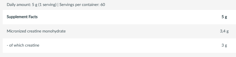 ΙΣΧΥΣ: Μόλις 3 γρ. κρεατίνης ημερησίως είναι αρκετά για να επιτευχθεί το επιθυμητό αποτέλεσμα, ώστε να μπορείτε πάντα να αποδίδετε στο έπακρο.