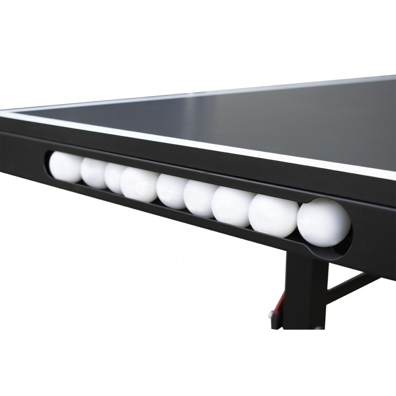 Ράφια για ρακέτες ενσωματωμένα στο πλαίσιο στην άκρη του τραπεζιού, ακριβώς εκεί που χρειάζεται, για να επιτρέψετε εύκολη πρόσβαση στον εξοπλισμό πινγκ πονγκ και για τους 2 παίκτες. Από κάθε θέση παιχνιδιού, το ράφι δεξιά χωράει μέχρι 2 ρακέτες. Σε εύκολη πρόσβαση και για τους 2 παίκτες.