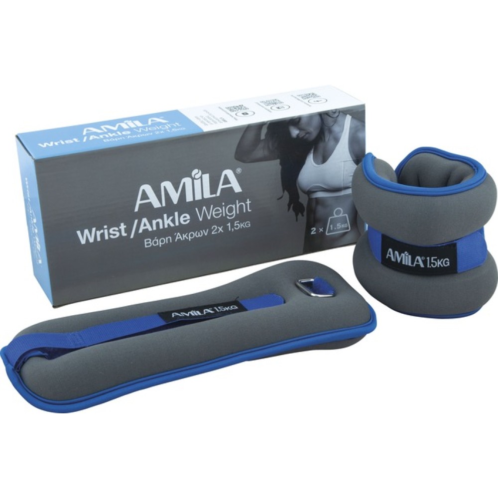 Τα συγκεκριμένα βάρη άκρων από την AMILA είναι κατασκευασμένα από Neoprene με ενισχυμένες ραφές, ενώ το γέμισμά τους είναι άμμος σιδήρου. Η ασφάλιση τους στα χέρια ή στα πόδια, γίνεται με Velcro. Όλα τα βάρη άκρων από την AMILA πωλούνται σε ζευγάρι.