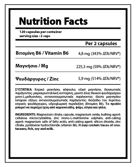 • Οφέλη του Ψευδαργύρου και του Μαγνησίου: Ο ψευδάργυρος συμβάλλει σε πολλά σημαντικά θέματα υγείας, όπως ο κανονικός μεταβολισμός των υδατανθράκων και η υποστήριξη του ανοσοποιητικού συστήματος, ενώ το μαγνήσιο βοηθά στη μείωση της κούρασης και της κόπωσης, τη διατήρηση της. ισορροπίας των ηλεκτρολυτών και την κανονική λειτουργία των μυών και του νευρικού συστήματος.